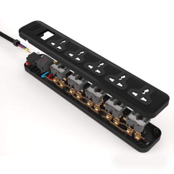 مشترك كهربائي من اي لوك 5 عيون، ilock STRIP 5 UNIVERSAL، مع كبل 3 متر، موصلا نحاسية، يوفر توصيلًا موثوقًا للطاقة للأجهزة المتعددة بفضل موصلاته النحاسية عالية الجودة وقدرته على تحمل الطاقة العالية.
