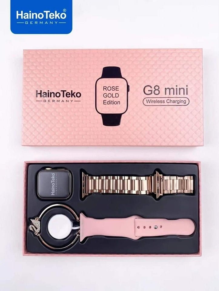 ساعة ذكية نسائية ذهبي HAINO TEKO G8 MINI | دعم عربي كامل ومكالمات (آيفون/أندرويد) | 2 استيك إضافي | ضمان 3 أشهر