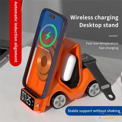شاحن لاسلكي 3 في 1 متعدد الوظائف لهاتف iPhone 14/13/12/Pro/Max/Apple Watch/AirPods – ساعة منبه LED، ضوء ليلي، محطة شحن سريعة